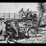 Armored truck and motorcycle in action, Pershing Mexican Expedition, New Mexico, 1916, by W.H. Horne. Palace of the Governors Photo Archives LS.1908.