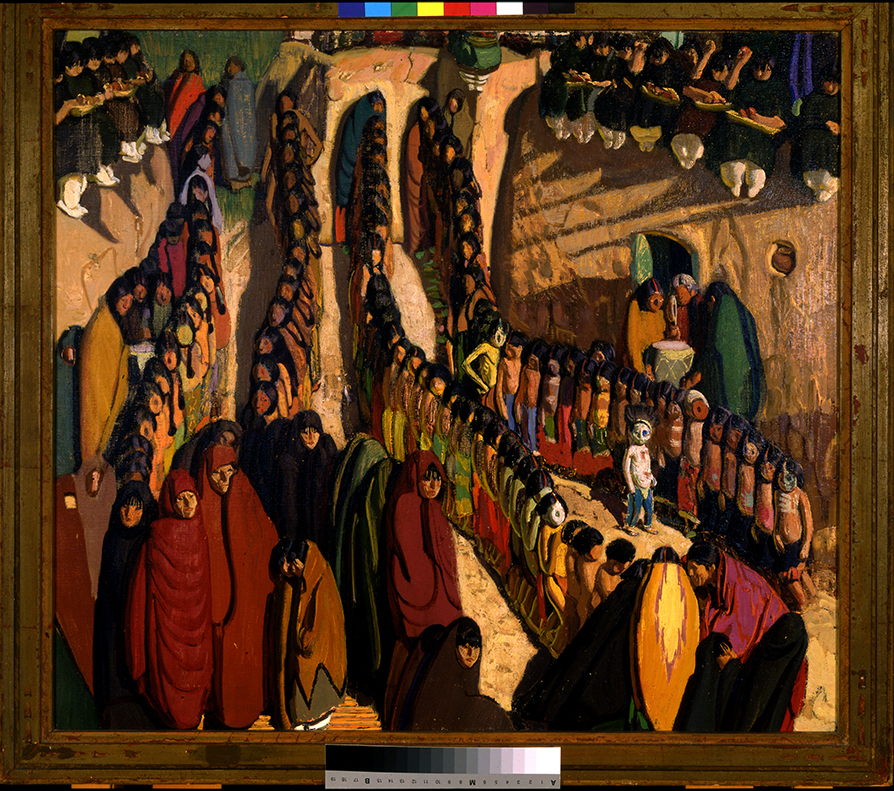 The role of artist communities in New Mexico is explored through works by members of the Taos Society of Artists, Los Cinco Pintores, Transcendental Painting Group, Rio Grande Painters, and the Stieglitz circle. Each of these groups had a distinctive aesthetic and set of guiding principles Good Company offers a closer look at what makes each unique.