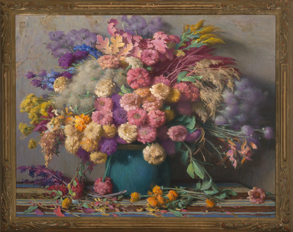 “The Museum of Art currently holds 16 works by Sharp in its permanent collection, but these are the first two flower paintings and they are gorgeous,” said Museum of Art Director Mary Kershaw. “We are grateful for this significant donation to the Museum from the Thorpe family and proud to supplement our collection of works from the man considered the ‘spiritual father’ of the Taos Artists Society.”