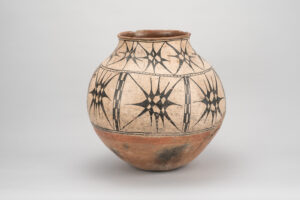 Large jars were set in the house for storing food, clothing, and water. The cosmological designs on the jar are prayers for goodness and for fertility of the world to help form the very substances being stored in the jar.